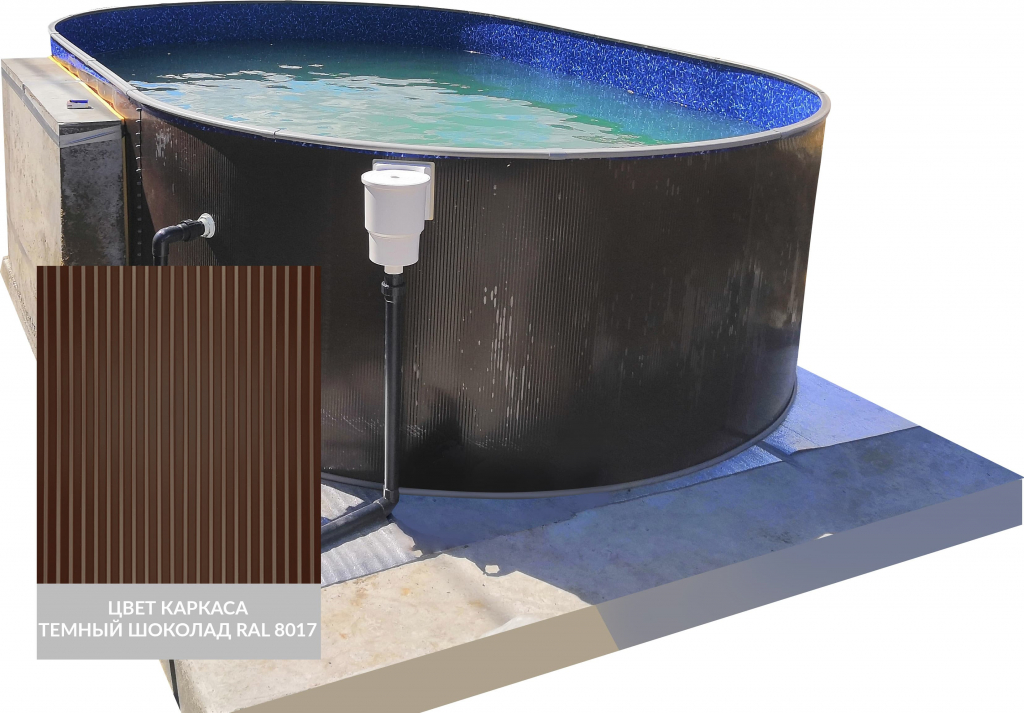 Бассейн морозоустойчивый овальный ЛАГУНА 3.0х2.0х1.25м вкапываемый 30020001 - шоколад (скиммер, форсунка)